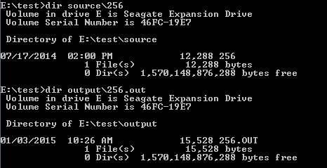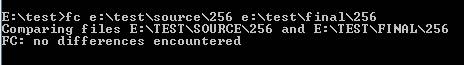 You can use the included program xvi32.exe (in the zip distribution) to validate the two 256 files are the same. Or you can use the internal DOS program FC or my little helper app, fcomp.exe.