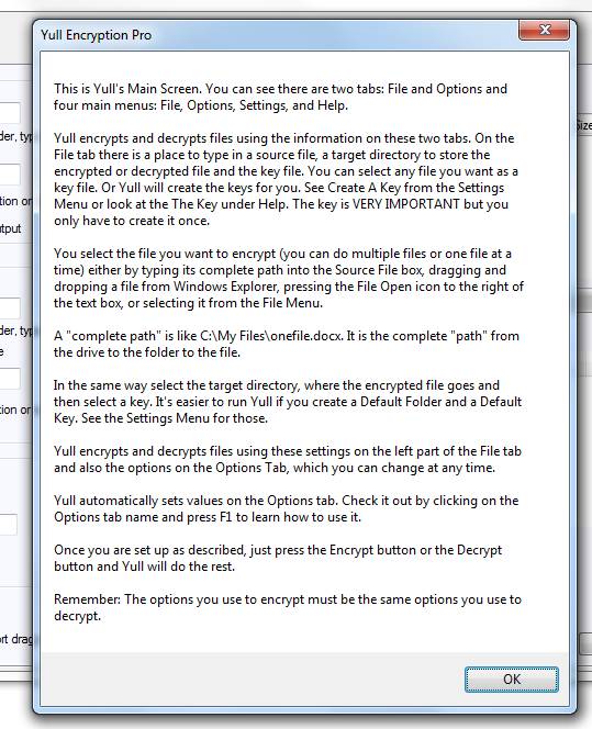 to encrypt and decrypt files but of course you can use other files for a key (or instruct Yull to create it for you). YOU ALWAYS NEED THE SAME KEY TO ENCRYPT AND