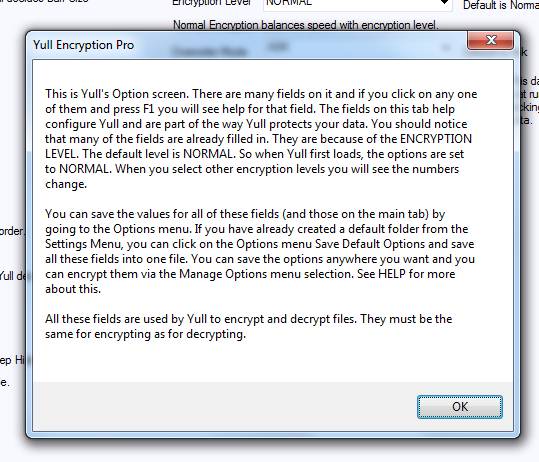 The four elements Yull uses are the source file, the output directory, the key and the options. It is easy to see and modify the options in the GUI app. They are on the options tab. Also, in most places, F1 will bring up a help screen about where you are.