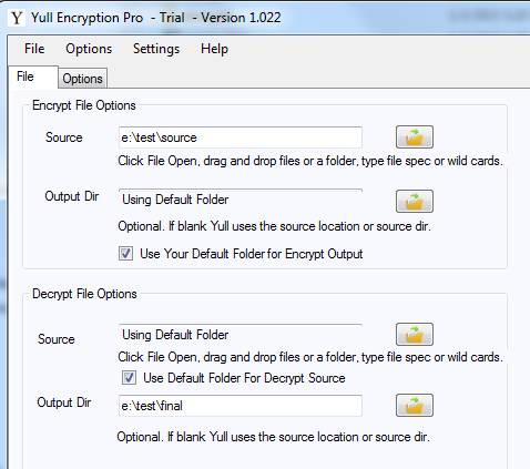 So now if you elect to use the default encryption output folder and the default decryption source folder, you will be referencing these folders.