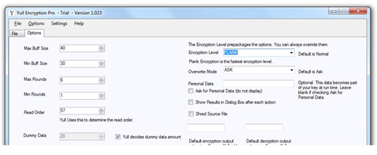 Second, unlike other applications (I have done a brief survey of them but I can't validate this is 100% correct; just seems that way), Yull's encryption mechanism depends not only on the key but also on eight options: