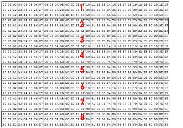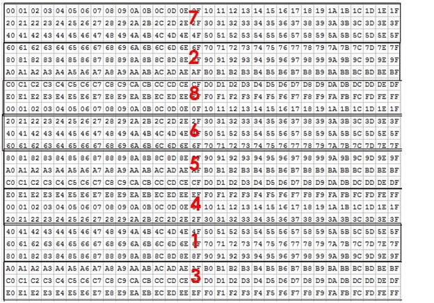 Which is the read order. Note again, these values are derived from simple math and the key. They are otherwise irrelevant except that they are all unique. This means that Yull reads the 7th block of data first, process it and write it out, then the 2nd, then the 8th, then the 6th and so forth. And written out in this order.
