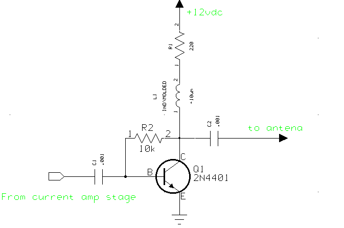 The 2N4401 can be found at Radio Shack too. Using the MPS918 instead of the 2N4401 can produce up to 150mw. C2 is of the same value of C1, I took the one that goes to the on board antenna pad.