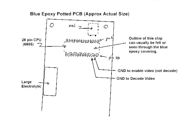 - Gnd pin 27 of the 28-pin (6805) uP (enables video.)