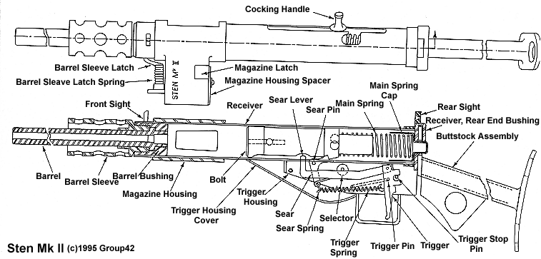 Of all the many Sten guns that were constructed during the second world war, most of them ended up here in the United States. They were stripped of their receivers ( the part the B.A.T.F. considers the gun) and are now available from many sources as parts kits. These plans will focus on the construction of a new receiver that will work with these parts kits. It is very possible to put a fully functional Sten Mk II or Mk III together for much less than $200