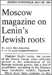 In addition, a French Jewish periodical, Review de Fonds Social Juif,5 reported that a Soviet novelist, Marietta Shaguinian, was prevented by Soviet censorship from publishing evidence of Lenin's Jewish ancestry. A number of Jewish publications in recent years have disclosed Lenin's Jewish heritage, including the Jewish Chronicle.6