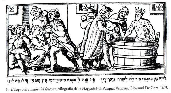 6. The Pharaoh's Bath of Blood, woodcut from the Haggadah of Passover, Venice, Giovanni De Gara, 1609