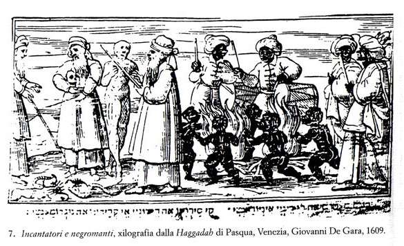 7. Enchanters and Necromancers, woodcut from the Haggadah of Passover, Venice, Giovanni De Gara, 1609