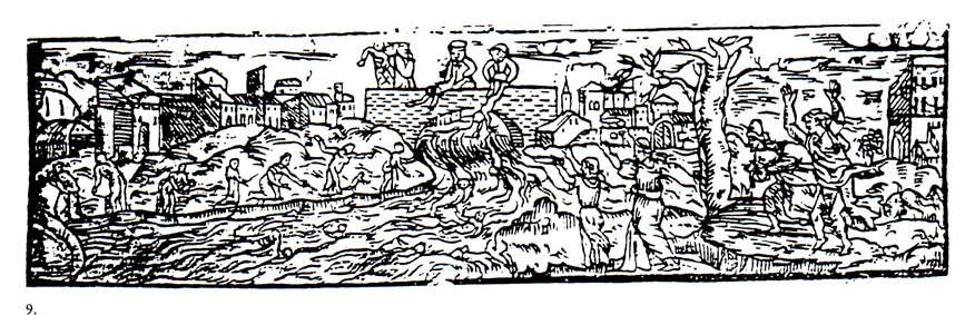 9. Children Drowned in the Nile, woodcut from the Haggadah of Passover, Mantua, Giacomo Rufinelli, 1560