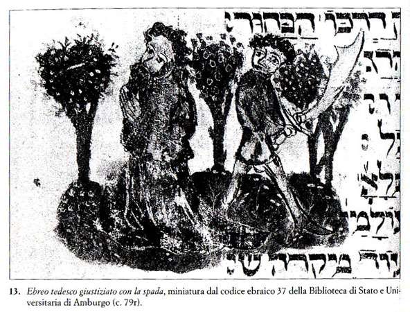 13. German Jew Being Executed with a Sword, miniature from Jewish Code 37 from the Hamburg State and University Library (c. 79r)