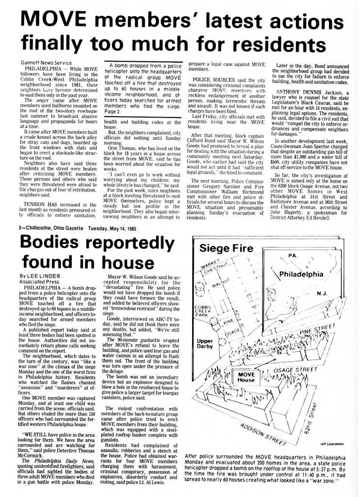 About mid-May came the news of the System attack against a group of non-Whites and White renegades holed up in a Philadelphia slum district. The group called itself "MOVE" and, other than the racial make-up of those involved, the circumstances and details were strikingly similar to the System attacks of a month or so ago, only this time directed against one element of the Movement calling itself The Order. (The only other main difference worth noting was the geography involved: whereas the Whites made their stand in the countryside, the Colored made theirs in the metropolis.)