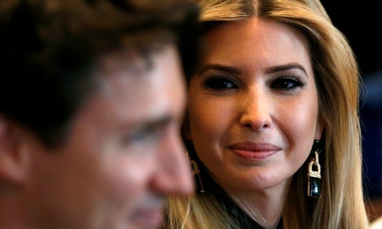 and aluminum industries know? Sulzberger's scribblers would rather we listen to the metrosexual Marxist mangina, Justine Trudeau, instead. . 1 & 2. CEO Michael Bless. Management and labor agree -- NAFTA stinks! 3. Libtard Ivanka (shown making eyes at Justine) seems to have a thing for girly boys. Thank goodness that she and her hubby Jew Jared have been squeezed out of influence by General Kelly. ![]() Boobus