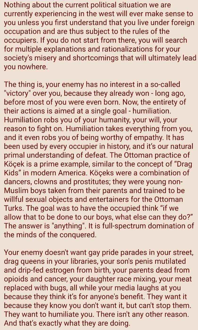 unwarranted guilt and shame upon humanity via the "holocaust", humanity is rendered