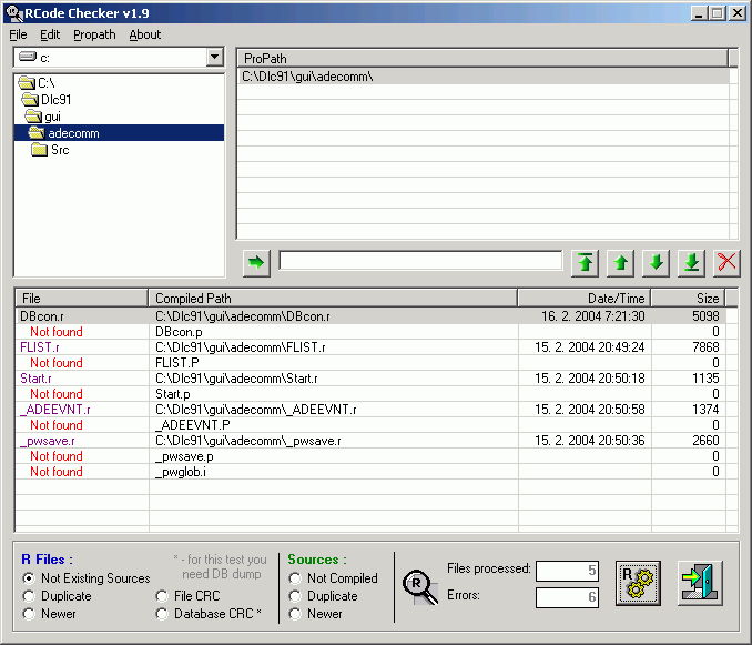 - Not Existing: if exist source and includes from RCode