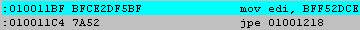 Este codigo nos indica que las direcciones 010024D2 y 10024DB accedes a esta parte del codigo a traves de un salto condiconal (C).