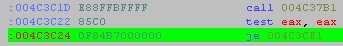 Before that jump that we have changed (je 004C3CE1) we have "test eax,