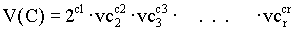 – i-тый множитель канонического разложения числа V(C), ci – его степень;