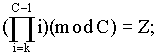 где Z = ((C–k)!)(mod C), если k(mod 2) = 1, иначе
