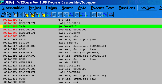 Dans le menu général, ouvrez Goto----> Goto Code Location----> rentrer : 4ACEC1----> OK : ce qui vous amènera directement à cette ligne dans le listing code ASM .