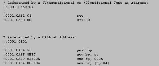 pour 0001:0A64 avec le CALL à l'adresse 0001:0A64--> "Referenced