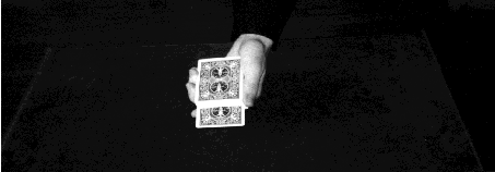 · Le grand mouvement du bras vers les cheveux permet de cacher le petit mouvement consistant à retourner le jeu : vous pouvez utiliser ce principe dans d'autre tours.