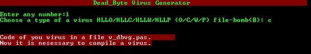 These batch programs generate a multitude of replicating virus-like batch programs from user-specified parameters. Since they are written using the MS-DOS batch language they are rather easy to find and disable, but at the same time, depending on the payload, they can be just as dangerous as assembly viruses.