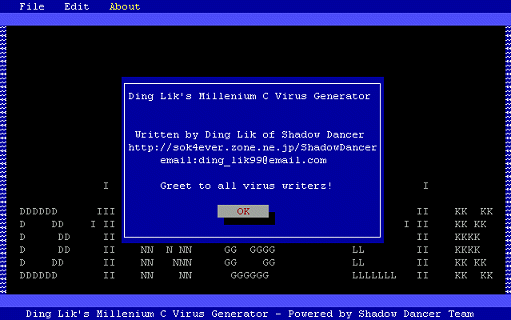 A generic virus creation tool that, like a few other programs in this category, drops well known viruses from .DAT files. The viruses that come with this kit are: