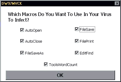 Word 97 macro virus generation tool by the creator of UCK, AMG and UMP.