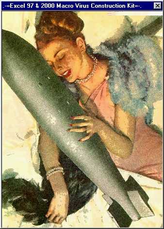 Macro virus creation kit capable of creating viruses for Word, Excel and Access. Many user selectable features (infection techniques, payloads, stealth techniques) are available. The kit creates .BAS VBA source codes that need to imported into one of the three applications to make the final virus. By the author of W97MVCK. In version 1.2 the language used is user selectable (German or English) and the viruses for Word and Excel are produced in both the .BAS source code as the "compiled" product. There are 18 payloads for Word, 12 for Excel and 6 for Access.