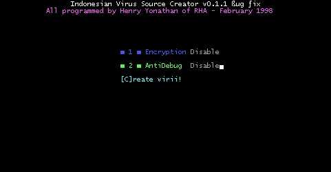 MOS v.7d - July 1998Look here for the expanded history/background of this virus generator. The source code to this virus generator and a modified web version was released with Codebreakers Zine #4.