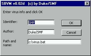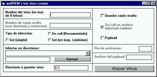 Generic batch virus creator with a limited number of user selectable features. It needs VBRUN300.DLL to function.