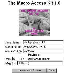 Name: ZeMacroKiller98 Macro Virus Construction Kit