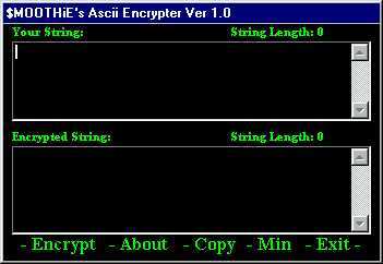 EnCryption: very simple gamma encryption with dynamycal change of internal crypt parameters. To encryption can be used instructions: Xor, Sub, Add, Ror, Rol, Not. Count of crypt instructions can be from 2 to 10.