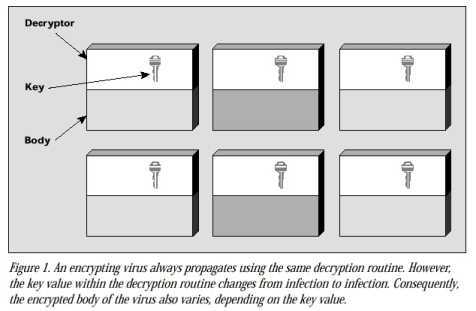 In response, virus authors began encrypting viruses. The idea was to hide the fixed signature by scrambling the virus, making it unrecognizable to a virus scanner.