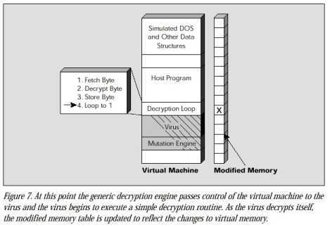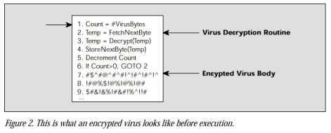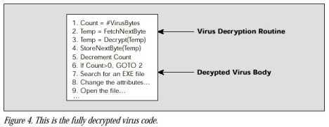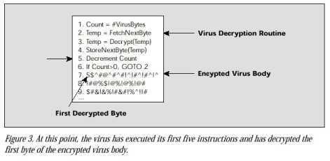 gains control of the computer, then decrypts the virus body. Next, the decryption