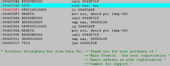 Ahora estamos sobre la línea de código 85C0 TEST EAX,