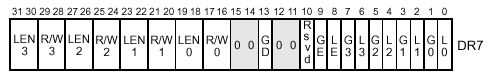 DR7 es 00 (ejecución de instrucción), entonces el campo LENn deberia ser 0.