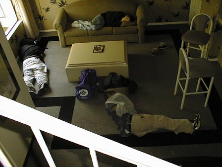 KC and Steph on my couch...it was a great room! BTW, they mentioned that we are all invited back and someone booked the next 3 years at this hotel...!!!! |