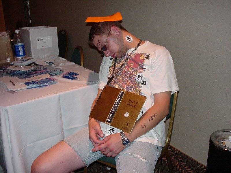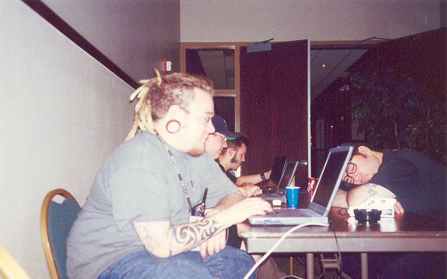 | discore_2.jpg | 6000 hackers in one place and he's still on IRC. |