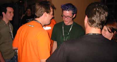 Everyone gathered around Optyx.