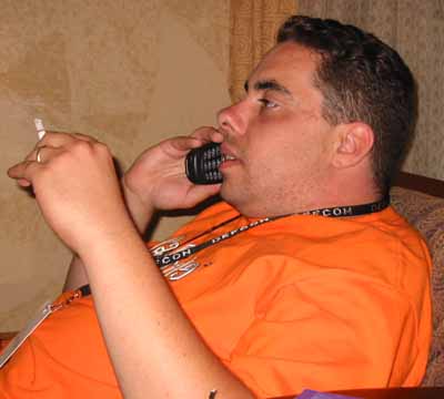 Parmaster on the phone placing an alcohol order to the other half of the crew.