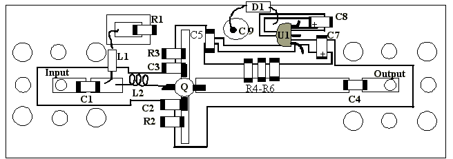 design frequency. R1 is a 50 ohm chip that acts as a termination