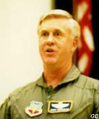 A Neighborhood DialogueOn May 20, we dropped in on the Neighborhood Dialogue in Caliente and found it woefully lacking in the refreshments department, but there were plenty of freebies--posters, photos and patches--and a whole gaggle of Colonels with no one to talk to but little ol' Psychospy. There were about 20 in the entourage, including two full Colonels, four Lt. Colonels and an assortment of Majors, airman and SAIC employees to assemble the displays and operate the slide projector. The group had traveled here in a bus, and Caliente was the next-to-last stop in band's six-town tour. We think they could use a new manager, because only six guests turned up in this back-water bayou, and attendance never topped twenty in any of their previous gigs. Better hors d'oeuvres might have helped.With half the Air Force at our disposal, we chatted up the brass and asked about range operations. Everyone knew Psychospy, and a Colonel said he had visited our web site. The number "51" was never mentioned, of course--it's so gauche. There was a slide and video show about range operations and Col. Carpenter and Installation Commander Chris Long gave short speeches. This was followed by a question and answer period. We asked again whether Groom Lake was included in this EIS, and we got the same politely inconclusive answer: All lands covered by 99-606 and amendments would be included. Another citizen asked whether the federal government had any right to manage public lands to begin with, and Col. Chris Long said they were operating on that assumption. A third resident asked how long you had to be in military service to get a Majestic clearance. We smiled at that one, but no one else in the room seemed to get the joke. Col. Chris Long seemed genuinely stumped. He said he had not heard of such a clearance. Lacking further questions, the presentation ended, and we went back to chatting with the brass. In the interests of courtesy, we avoid the whole Majestic issue and tried to ask only non-threatening questions that could be answered. We did stumble across a couple of tidbits. One is the connection between Area 51 and Gulf Breeze, Florida: The 53rd Wing* at Eglin Air Force Base*, not far from Gulf Breeze, reports directly to Nellis Air Force Base under the Air Warfare Center. The mission of the 53rd is both mission training and the testing of new weapons systems. Presumably those activities will take place over the ocean just south of Gulf Breeze. The 79th Test and Evaluation Group* is also located at Eglin. This unit is allied with Edwards Air Force Base*, which may control Area 51. It seems only natural, then, that Gulf Breeze should be a UFO hotbed. The other tidbit was a non-answer to an innocent question. We asked a Colonel about the purpose of the airstrip at Basecamp, on US-6 about 15 miles northeast of Warm Springs. The officer feigned ignorance of the airfield, which appears in the Air Force's own 1991 Special Nevada Report (page 6-3). The report says: