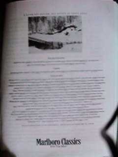 I'm sorry, but after having searched the Web everywhere I could not find any ready-scanned image of the advertisement that I will analyze here. You'll have to content yourselves with the badly scanned image I have made myself, that is until some pious soul will find and send me (or Fravia+) a better scanned image of this advertisement.Rhetoric of advertisement, a "Marlboro Classic" advertisement analyzed By Martine Joly (MARE) 14 March 1998