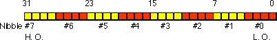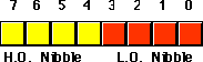 Bits 0..3 comprise the low order nibble, bits 4..7 form the high