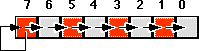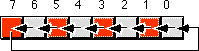 in the opposite direction. Bit seven moves into bit six, bit six moves into