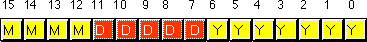 the five bits making up the day, and YYYYYYY is the seven bits comprising