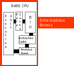 the data cache buffers memory. The CPU uses the data/address bus only when