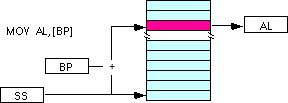 contains 1598h and di contains 1004, mov ax,[bp+di] will