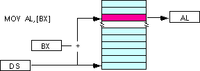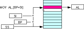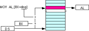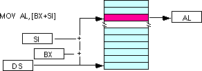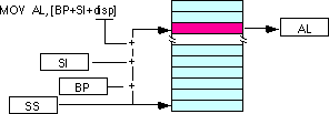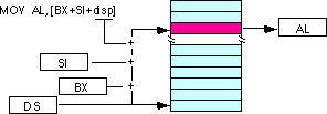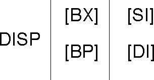 disp[bx], [bx][disp], [bx+disp], [disp][bx], and [disp+bx] [bx][si], [bx+si], [si][bx], and [si+bx] disp[bx][si], disp[bx+si], [disp+bx+si], [disp+bx][si], disp[si][bx], [disp+si][bx], [disp+si+bx], [si+disp+bx], [bx+disp+si], etc.MASM treats the "[ ]" symbols just like the "+" operator. This operator is commutative, just like the "+" operator. Of course, this discussion applies to all the 8086 addressing modes, not just those involving BX and SI. You may substitute any legal registers in the addressing modes above.